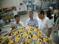 中國紡織工業聯合會會長孫瑞哲(左一)一行在視察,指導企業發展