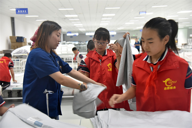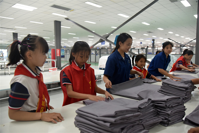 導(dǎo)讀:9月23日,濱城區(qū)玉龍湖小學(xué)四年級學(xué)生在老師帶領(lǐng)下走進(jìn)公司,實(shí)地參觀了公司的生產(chǎn)車間以及部分展廳,現(xiàn)場體驗了家紡產(chǎn)品驗整及包裝等生產(chǎn)環(huán)節(jié),感受勞動的艱辛與快樂。
