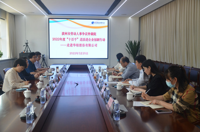 市勞動(dòng)人事?tīng)?zhēng)議仲裁院副院長(zhǎng)翟瑞民、勞宏偉,調(diào)解仲裁二庭庭長(zhǎng)孫靜,四級(jí)主任科員畢延軍等“送法服務(wù)隊(duì)”一行,在公司副總經(jīng)理趙玉忠、孫玉濤等陪同下,參觀(guān)了檢測(cè)中心、綜合辦公區(qū)、面料展廳、花布展廳、家紡展廳、創(chuàng)意設(shè)計(jì)中心、工程技術(shù)研究院等區(qū)域。雙方圍繞新形勢(shì)下構(gòu)建和諧勞動(dòng)關(guān)系、推動(dòng)企業(yè)整體發(fā)展等內(nèi)容,進(jìn)行了深入交流與座談。