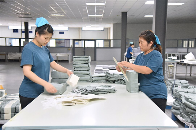 在高強度的工作環境下,王營和吳志叢不僅沒有放慢腳步,反而更加注重細節,力求完美,確保每一件產品都達到卓越的品質標準。最終,憑借她們不懈的努力與頑強的拼搏,完成天絲枕套熨燙4000件,整疊包裝枕套1600對,以兩人之力完成了相當于五至六人的工作量。