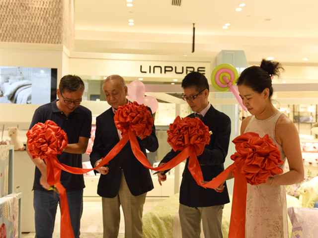 7月23日,華紡上海英儂公司Linpure藍鉑品牌成功入駐上海高級商場大丸百貨,華特迪士尼有限公司品牌高級經理Zinia.Ling女士,上海大丸百貨店長原田隆晴先生、部長柴田真先生蒞臨現場參觀祝賀,并與華紡Linpure藍鉑品牌總經理高鵬一同為開業剪彩。