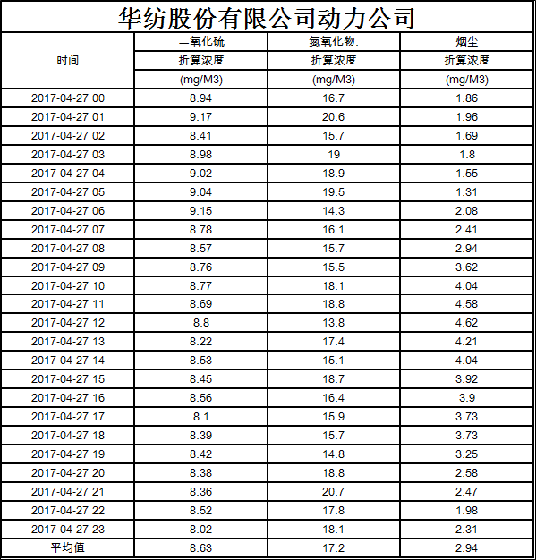 煙氣排放數(shù)據(jù)信息公開2017.4.27數(shù)據(jù)