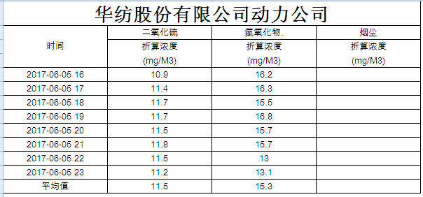 煙氣排放數據信息公開2017.6.5數據