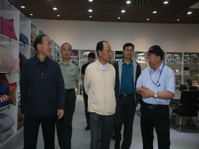 市人大常委會副主任呂德章,市政協(xié)副主席吳國瑞、趙建明,濱州軍分區(qū)參謀長許增全,公司黨委書記、董事長王力民,副總經(jīng)理孫中然等,陪同張文臺上將一行參觀了家紡展廳等處所。