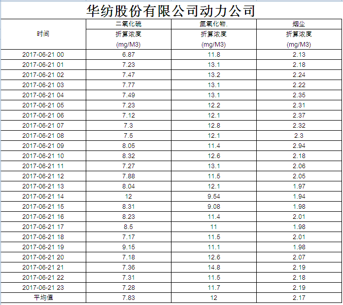 煙氣排放數(shù)據(jù)信息公開2017.6.21數(shù)據(jù)