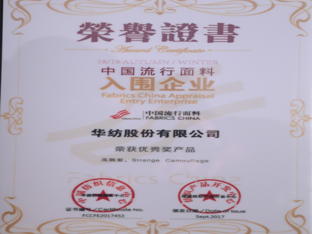公司一直以來注重產(chǎn)品設(shè)計、研發(fā)與創(chuàng)新,建立起以市場需求為導向的產(chǎn)品開發(fā)體系;再度入圍流行面料企業(yè),彰顯了公司在紡織產(chǎn)品開發(fā)能力的進一步提升。