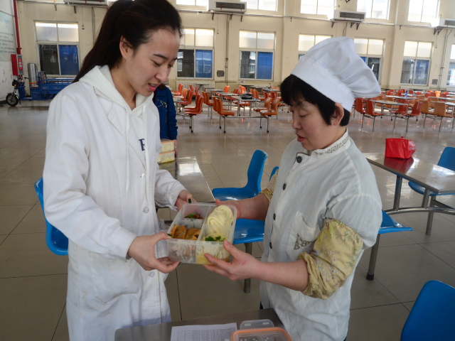 “紅燒肉、炸魚、雞腿、花卷、酸辣土豆絲”,這是公司為3月份過生日的50名單身員工準備的單身員工生日餐。中午下班后,“壽星”們陸續來到餐廳領取屬于自己的生日餐,研究院李佳奇打開生日餐盒,直言道“好香啊”。對于生產崗位三班員工,車間將統一領取,送到“壽星”所在的崗位。這不,今天中午家紡車間主任王旭洲早早地領到孔慶凡和王亞開兩位員工的生日餐,并送到了他們的手中。